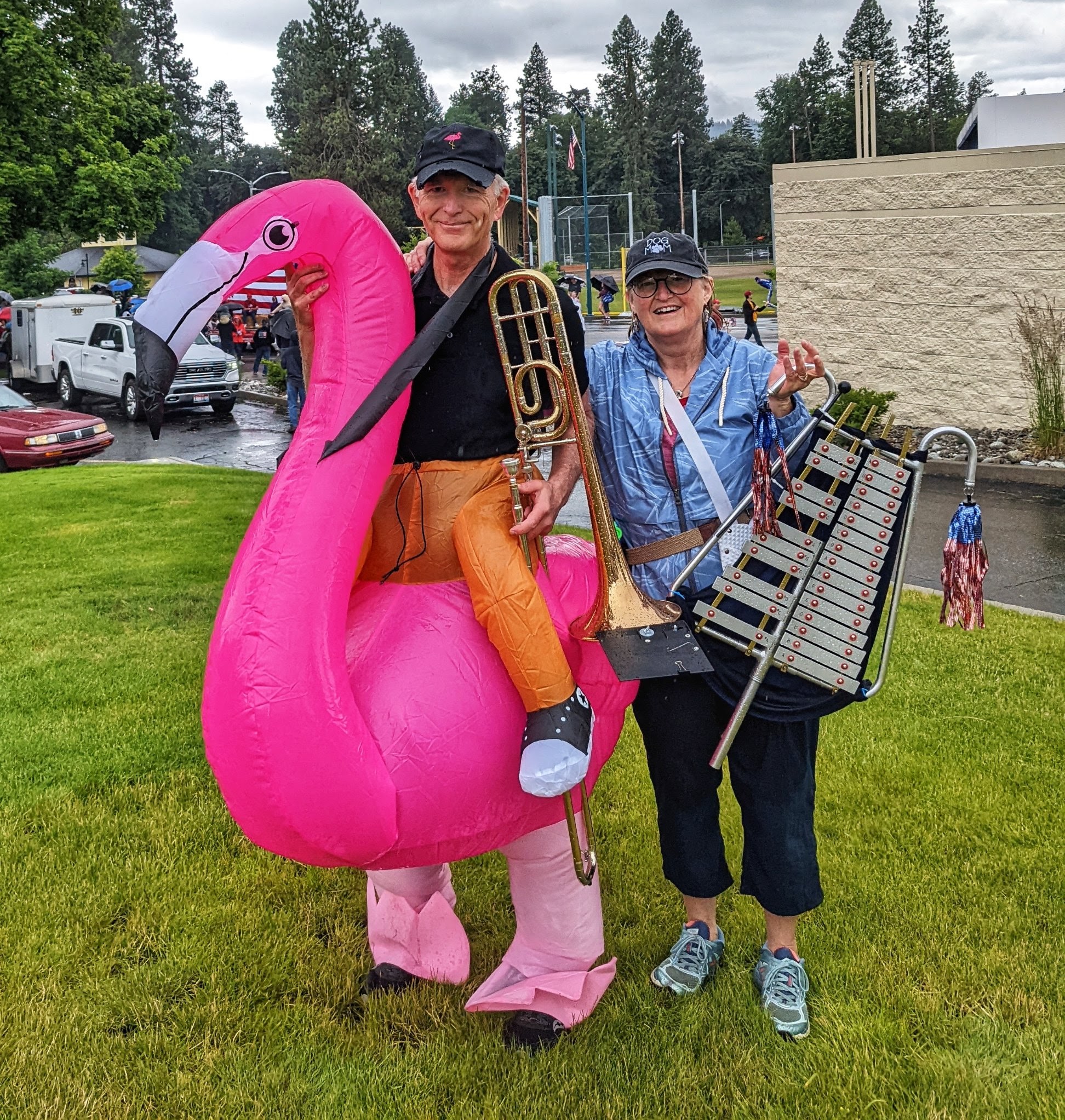 Dr. Wylie's wife Bev plays the glockenspiel and son-in-law Tim plays trumpet. Check out their past appearances...